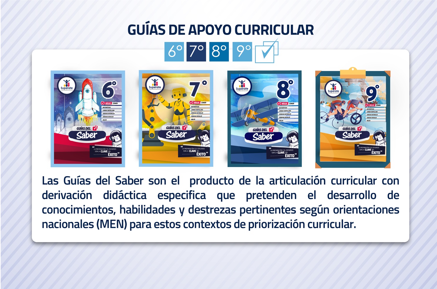 Las Guías del Saber son el producto de la articulación curricular con derivación didáctica especifica que pretenden el desarrollo de conocimientos, habilidades y destrezas pertinentes según orientaciones nacionales (MEN).